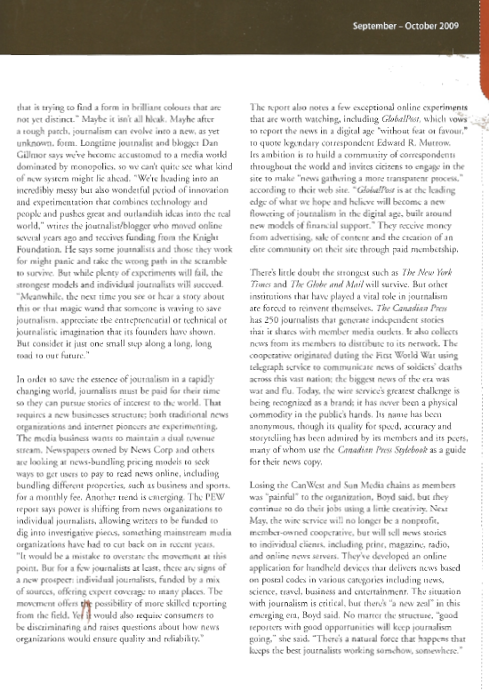 Colby Cosh, blogger for Maclean’s, embraces the new world order and rejects those who cling to older forms: “The term journalist should become extinct,” he said, during the panel discussion on The Next New Journalism. The Internet universe allows everyone to participate in the conversation about our world and does not limit it to a few elite individuals. “That class of accredited or entitled journalist is not going to exist in the future… It leaves us with something new.” A creative class, a collective truth, wisdom that is greater than any individual expert, he said.